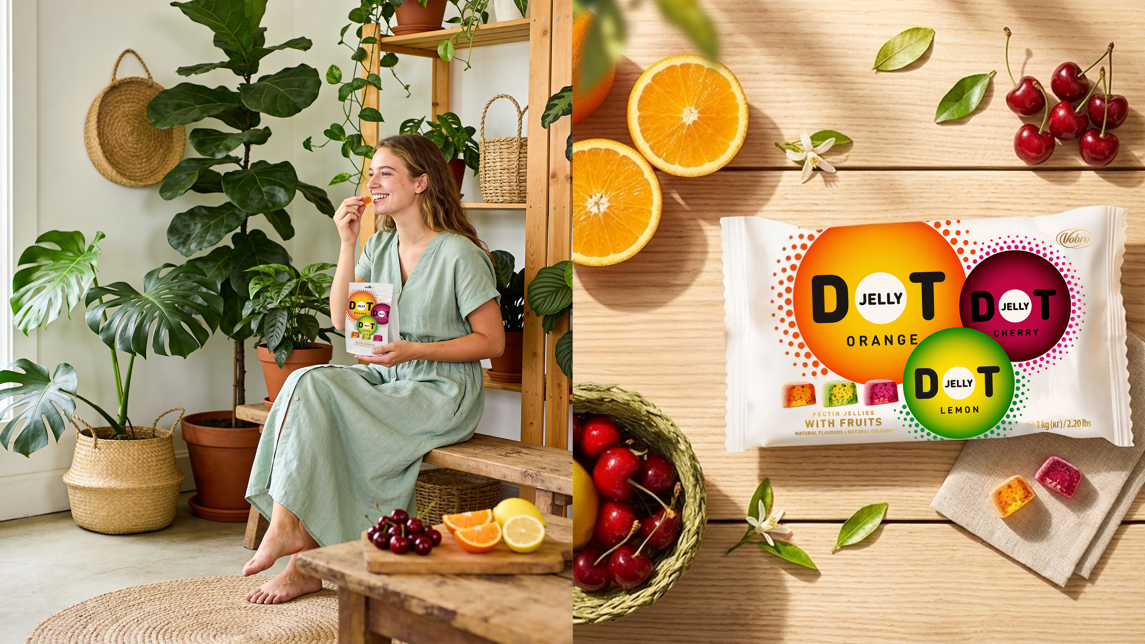 Projektowanie systemu opakowań dla marki WOW — pianki z galaretką owocową w czekoladzie w trzech smakach: cherry, cytryna i pomarańcza. Strategiczna odpowiedź Vobro na dominację Wedel w kategorii pianek czekoladowych.